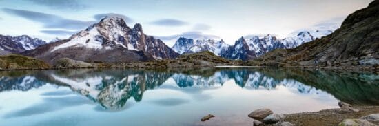 Panorama des Aiguilles depuis le centre de Chamonix.
